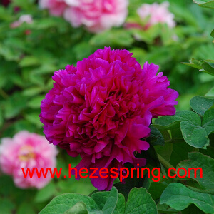 皇冠型型,花深紫红色,花径15cm x 10cm,花朵直上 ,中花品种偏晚。株型高,直立。生长势强,成花率高,萌蘖枝少。传统品种。